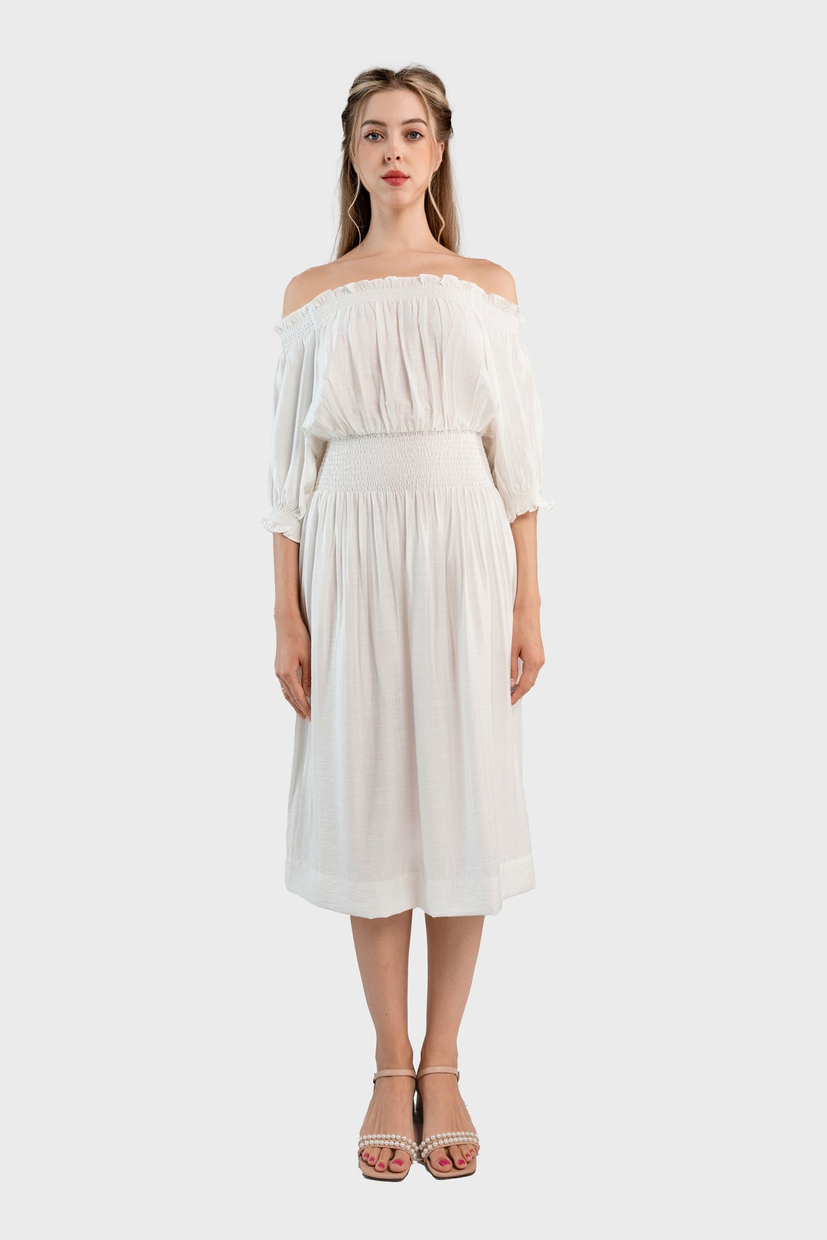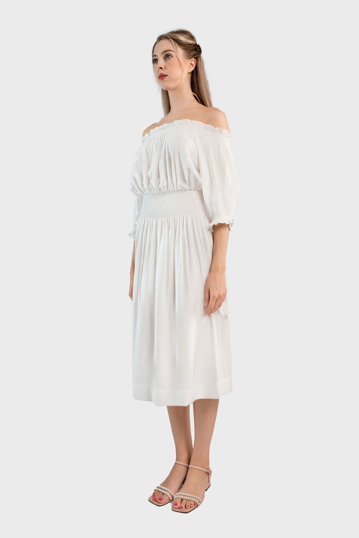 Off the shoulder midi dress-White