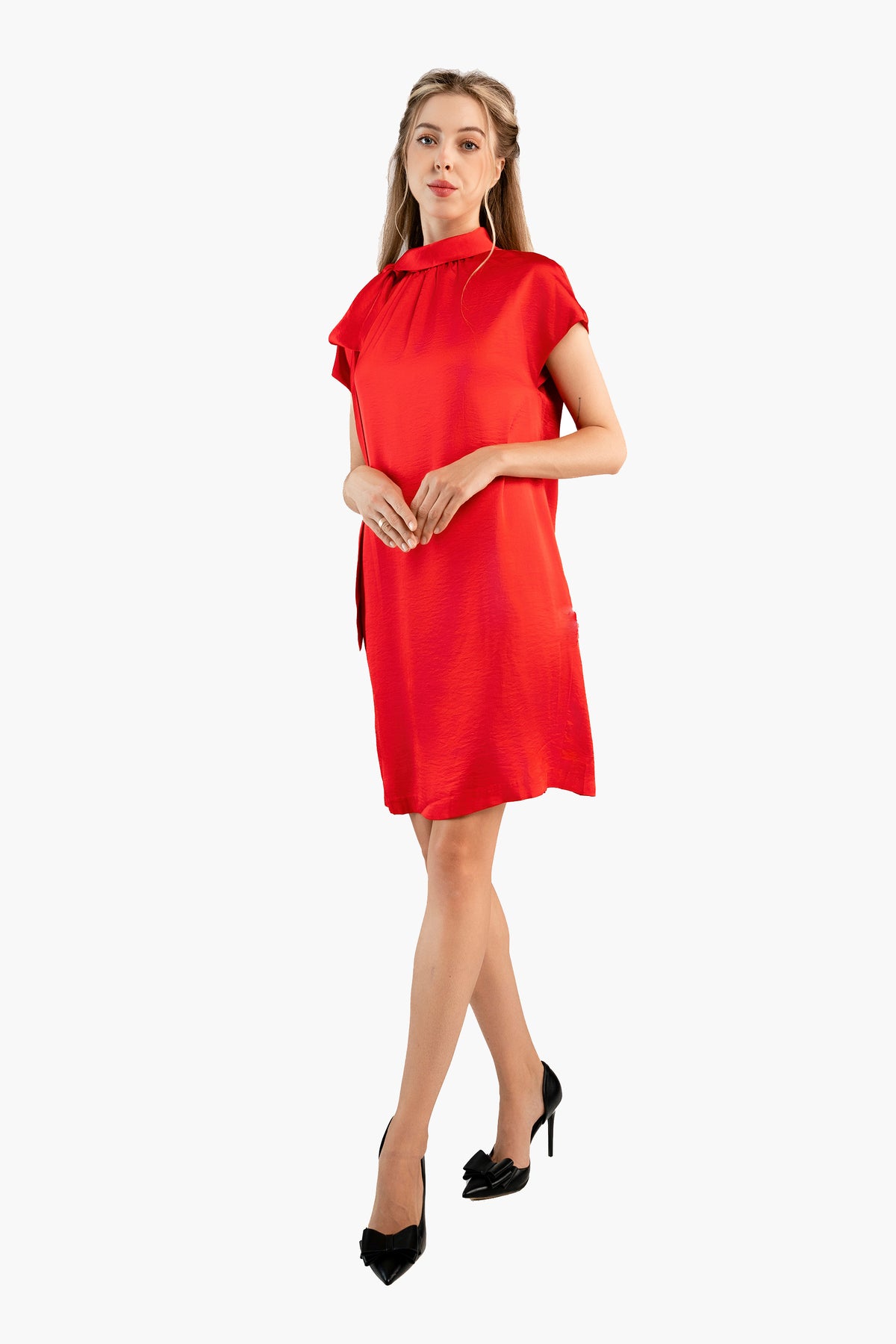 A fresh, dynamic dress but still polite and elegant. With luxurious materials and outstanding red color to help you stand out at any time. The A-line dress form always creates comfort for you to wear all day, the dress has dynamic short sleeves and arbitrary bows to create attractive accents for you. This dress with a length above the knee creates a youthful look, but a luxurious satin dress still creates elegance and solemnity. The red color never goes out of style, helping you save a lot for your wardrobe.