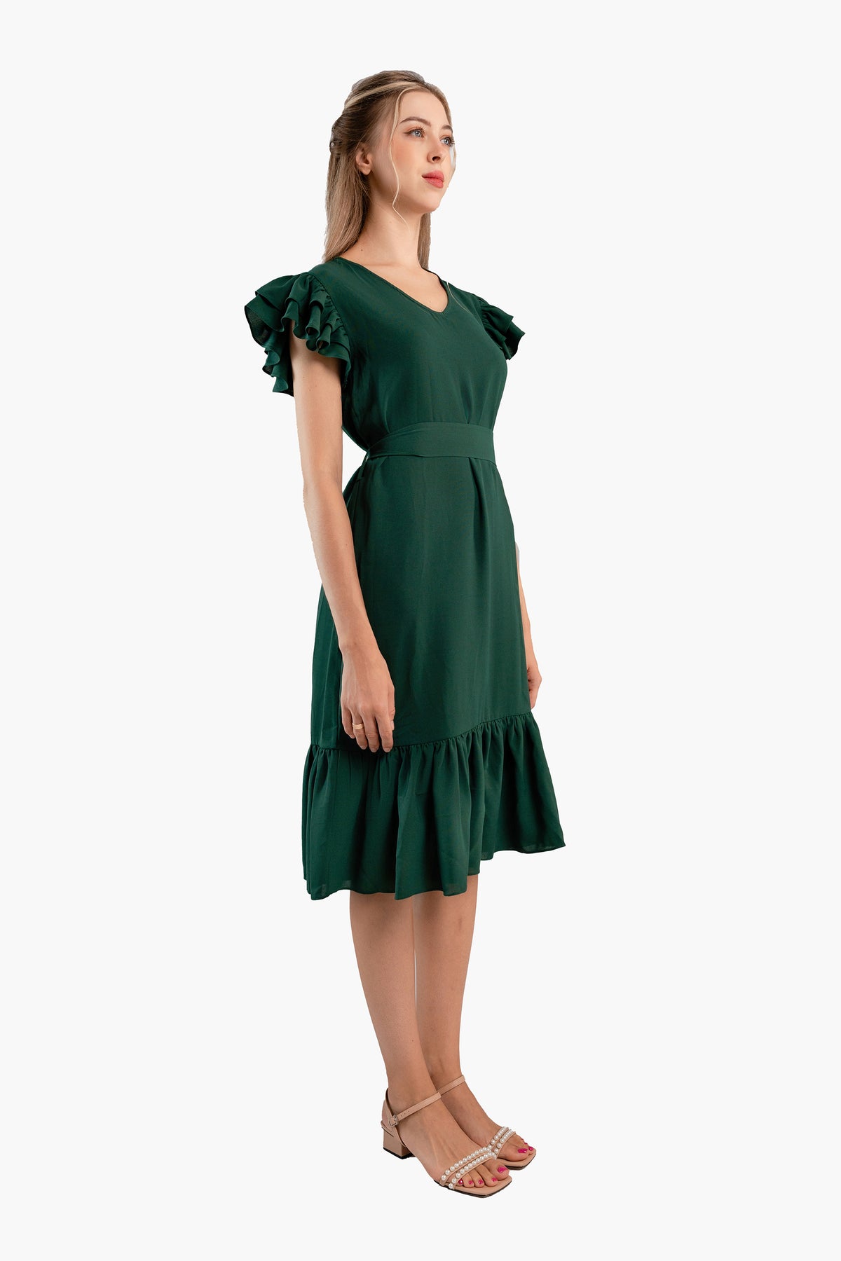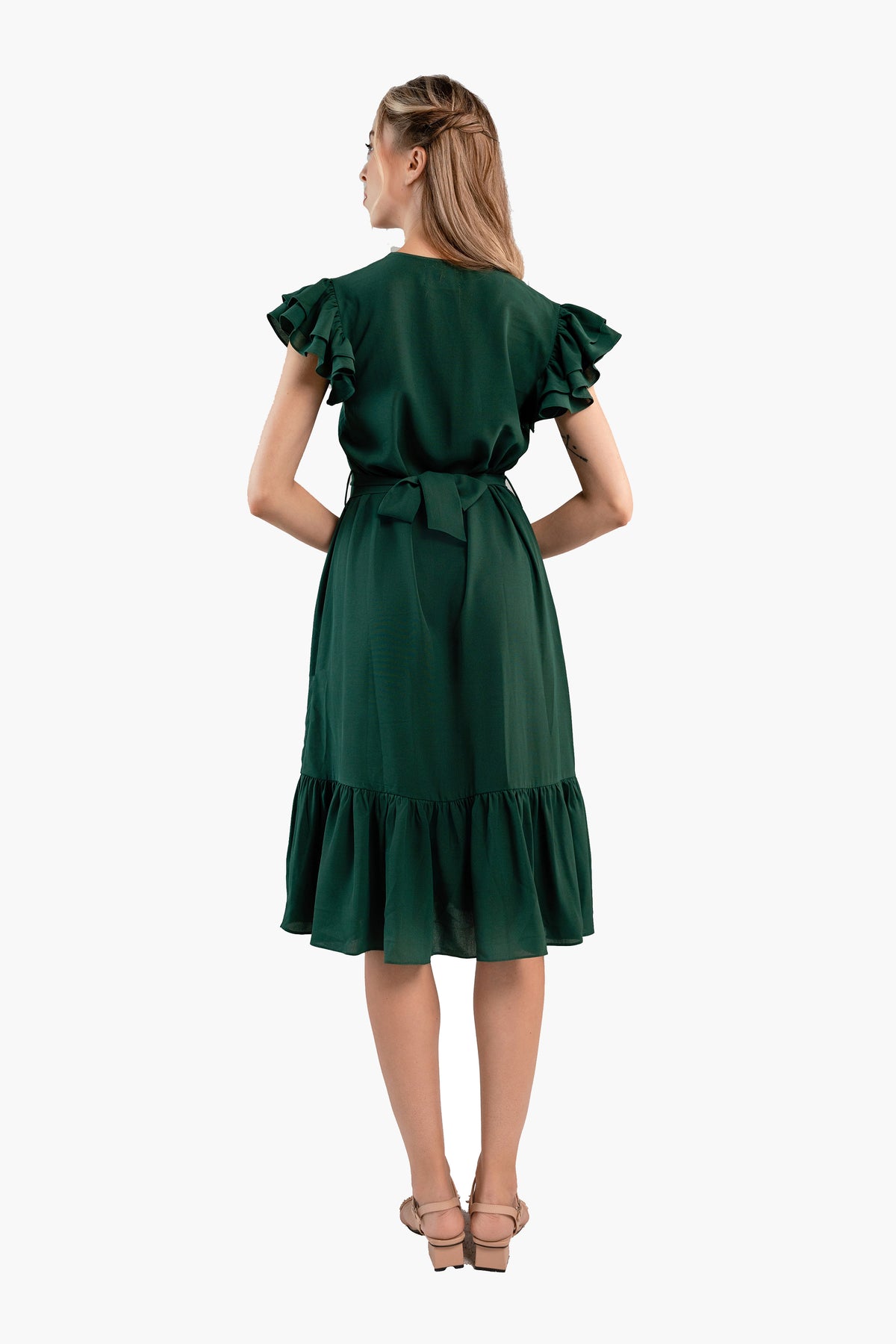 Experience the essence of spring and summer in our vibrant dress, designed for a youthful and fresh look. The dress is made of soft and breathable fabric that flows gracefully, creating an effortless charm. The high-waisted design features an adjustable belt and elegant puff sleeves, while the pleated hem adds a gentle sway to every step. Available in two unique colors - pistachio and dark green - this versatile midi-length dress suits all body shapes and occasions. Complete your look with statement accessories like earrings or necklaces that e